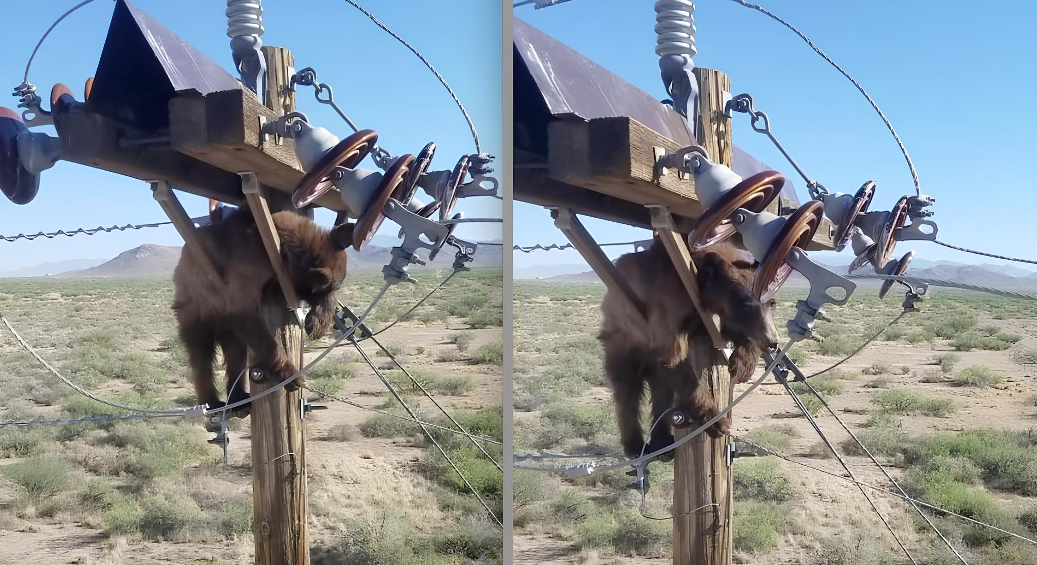 In an unusual and heartwarming incident in Wilcox, Arizona, utility workers became unexpected heroes when they rescued a young brown bear stuck atop a utility pole. The bear, weighing around 100 pounds, found itself in a precarious situation, dangerously close to high-voltage power lines.