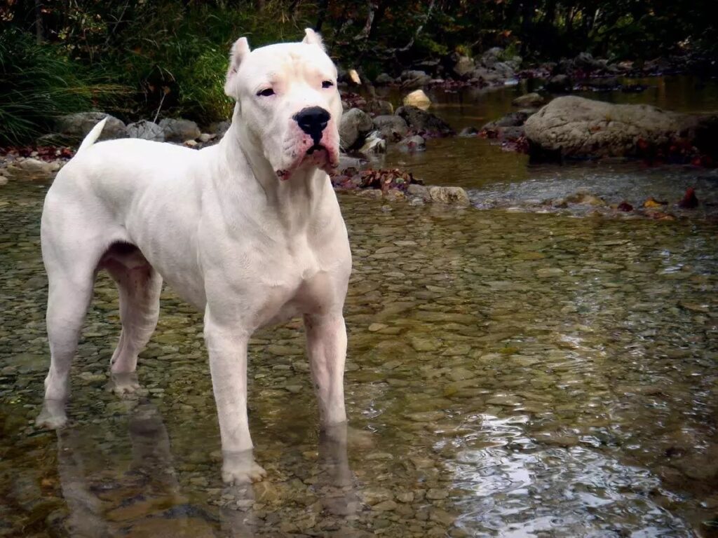 According to Wikipedia, the Dogo Argentino is a giant white, muscular dog that was bred in Argentina for big game hunting.