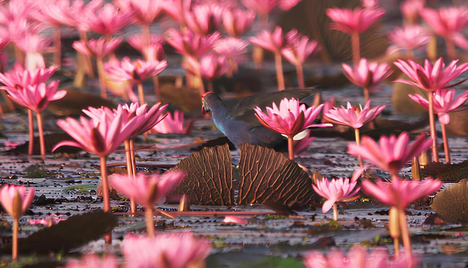 This floating bloom is native to South America’s Amazon Basin. The Hyacinth may generate up to 20 blossoms from a single stalk and can reach heights of 1m above the waterline.