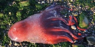A Strange Red Blob Washed up on a Washington Beach, Along...